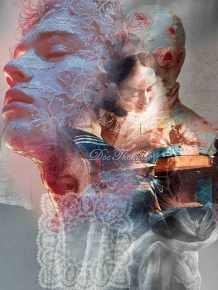 Vermeer’s original presents a young girl entirely consumed by her needlework, her fingers steady, her gaze downward, her world narrowed to the thread and cushion. Here, that narrowness becomes a universe. Her concentration is no longer just on lace—it becomes the thread that binds emotion, identity, and memory. The lacemaker is still there, still bending over her work, but now her figure is cocooned inside a swelling orchestration of faces, fabrics, and translucent textures. Around her, another face—ethereal, with eyes closed and lips parted—emerges like a spirit from the fibers of cloth, half-wrapped in floral lace. This feminine figure doesn’t interrupt the lacemaker’s world—it is the breath behind it. She is the ancestor, the dreamer, the embodiment of what this work means. She is lace made flesh.