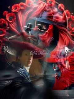 Color flows like music in this reinterpretation. Red dominates, in layers of symbolism and motion. The red is not passive—it bleeds, bursts, dances. It represents passion, rebellion, eroticism, and theatre. Red is the color of both power and peril; it draws the eye, demands presence, but also threatens exposure. The hat, originally a fashion statement, becomes a storm cloud of ruffled velvet, feathers, and blooming cloth, defying gravity and direction. The tones of this red shift from satin-bright vermilion to the darker, weightier maroons that cling to the hidden creases of identity. Red here is desire, performance, danger, and glory.