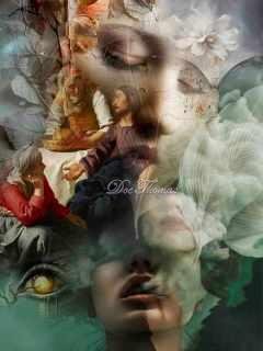 The original work by Vermeer, created around 1655, is one of his few religious scenes, unusual among his intimate genre paintings. It portrays Christ gently conversing with Martha and Mary—an image often interpreted as the balancing of action and contemplation. In my reinterpretation, I fractured the clarity of the scene and submerged it into a deep, symbolic atmosphere—one shaped by longing, shadow, and transformation. Here, the conversation is no longer linear; it pulses through multiple figures, gliding between closed eyes and parted lips, between the roots of emotion and the wings of spirit.